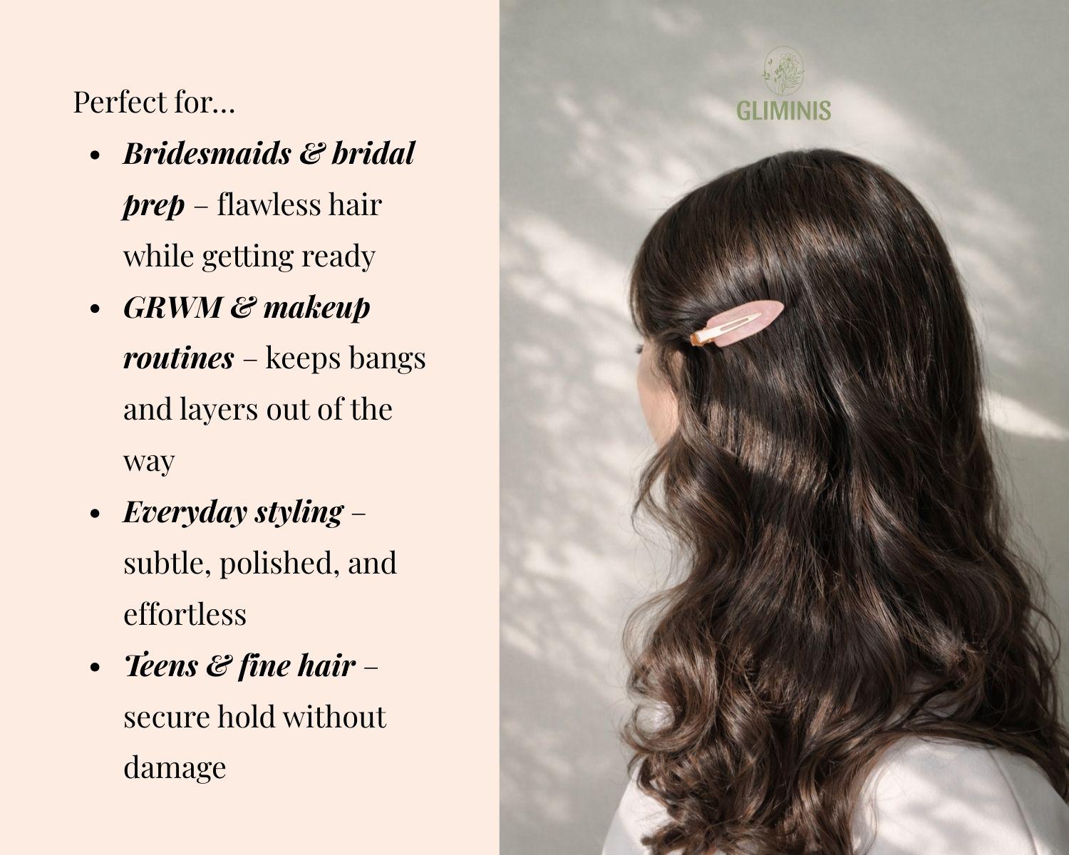 Lightweight and gentle these no crease no mark hair clips work beautifully for bangs fine hair and daily styling. Their clean feminine aesthetic makes them a favorite for preppy gifts teen girl accessories bridesmaid getting ready sets and thoughtful stocking stuffers.