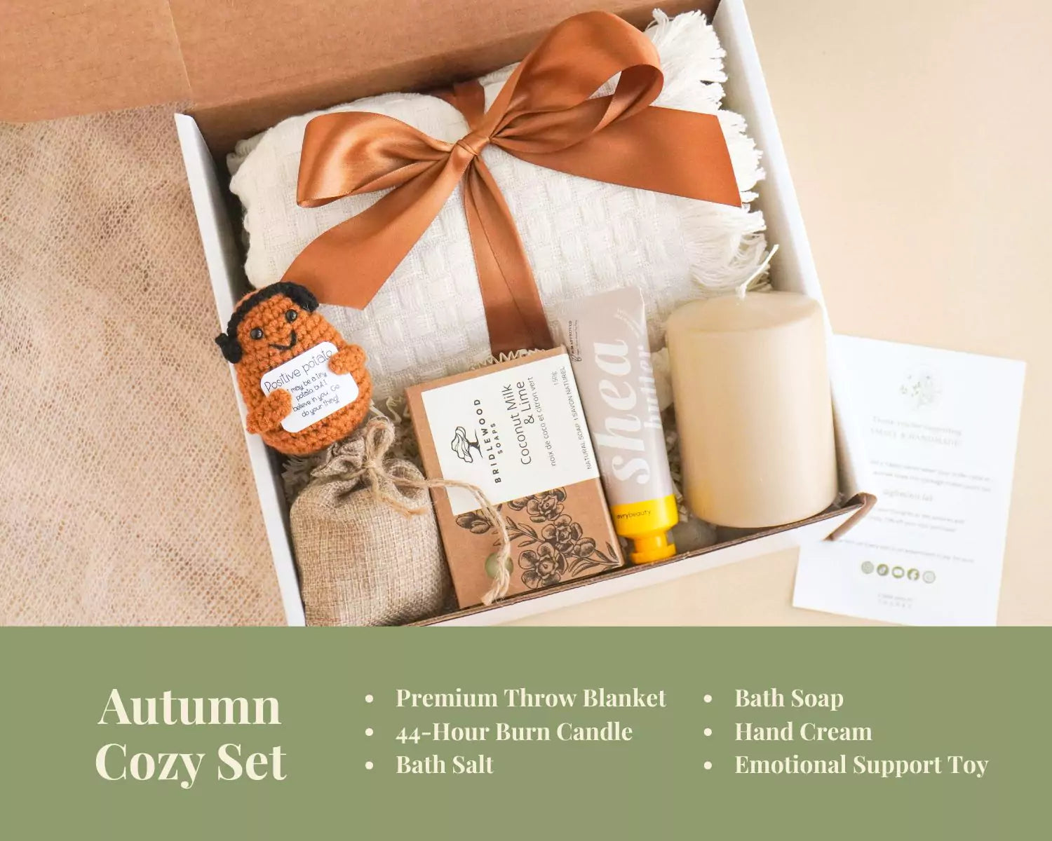 Bring the feeling of warmth and comfort with this earthy hygge gift box, filled with cozy self-care items perfect for fall and beyond. Thoughtfully curated to inspire relaxation, it makes an ideal corporate gift, employee appreciation present, or personalized thank-you gift for women. Beautifully packaged and customizable, this versatile gift set is perfect for birthdays, thinking-of-you surprises, or simply reminding someone they’re appreciated.