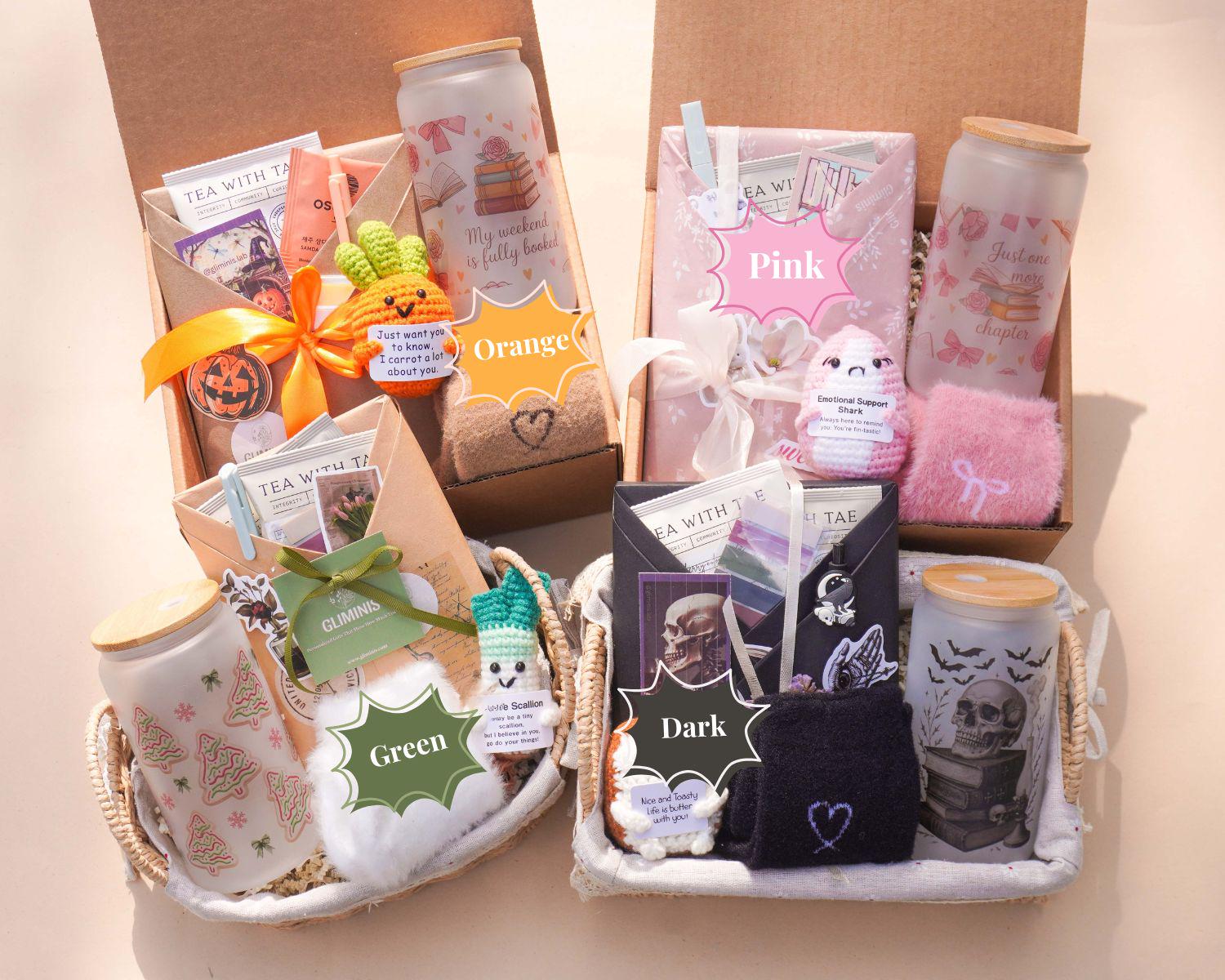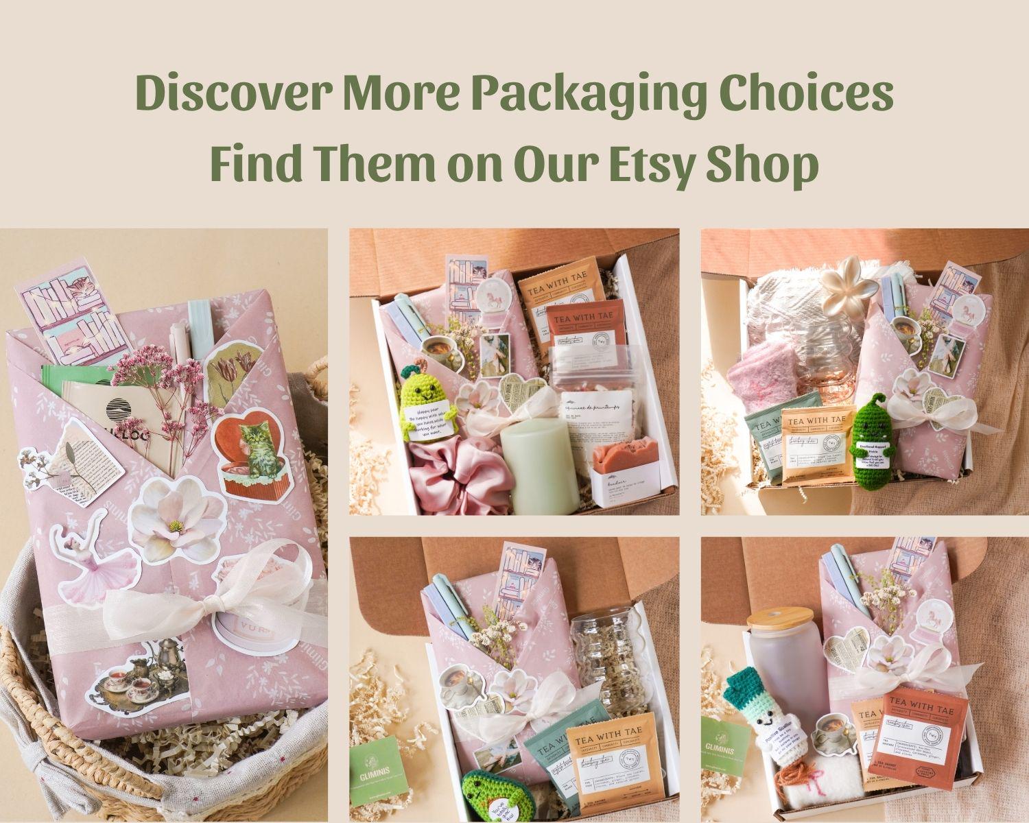 Includes everything above plus cozy add-ons like candles, cups, socks, soap, and more. Items vary by option and are shown in the listing photos.